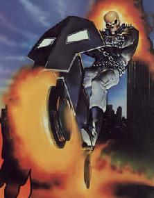 Parafernalia:Una moto llameante de origen místico, traje de cuero.